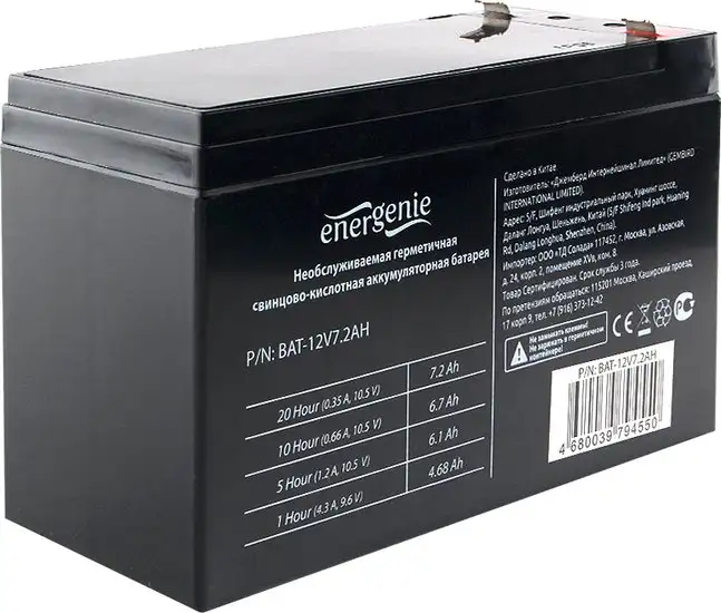 Этот аккумулятор для ИБП EnerGenie BAT-12V7.2AH обеспечивает надежное питание оборудования. Он использует технологию AGM, которая увеличивает безопасность и долговечность. Его номинальное напряжение составляет 12 В, а емкость — 7.2 А·ч, что позволяет дольше работать без подзарядки. Размеры аккумулятора: длина 151 мм, ширина 65 мм и высота 95 мм, что делает его компактным и удобным для установки. Вес устройства равен 2.15 кг. Клеммы типа F2 обеспечивают надежное подключение к системе. Аккумулятор не поставляется в комплекте с батареями. Он легко интегрируется в существующие системы ИБП и обладает высокой стабильностью. Благодаря своему дизайну, аккумулятор надежно держит заряд даже при постоянной эксплуатации. Эта модель подходит для резервных источников питания и обеспечивает безопасность работы оборудования.