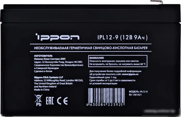 Аккумулятор для ИБП IPPON IPL12-9 (12В/9 А·ч)