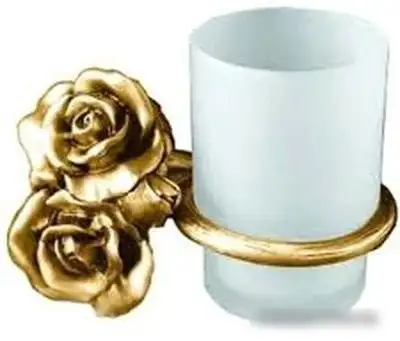 стакан для зубной щетки и пасты, настенная установка, латунь/стекло