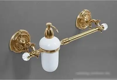 Держатель для полотенца Art&Max Barocco Crystal AM-2057D-Br-C выполнен из металла с бронзовой отделкой и имеет прямоугольную форму. Он устанавливается на стену, что помогает экономить место в ванной или кухне. Держатель обладает длиной 43 см и глубиной 9 см, что позволяет разместить несколько полотенец одновременно. В комплект входит также дозатор жидкого мыла, делая использование более удобным. Устройство крепится легко и прочно, обеспечивая долгий срок службы. Простая конструкция и элегантный дизайн впишутся в любой интерьер. Благодаря металлу, держатель устойчив к влаге и коррозии, что важно для влажных помещений. Этот держатель помогает держать полотенца сухими и в порядке. Он сочетает функциональность и стиль, делая ваше пространство более аккуратным и уютным.