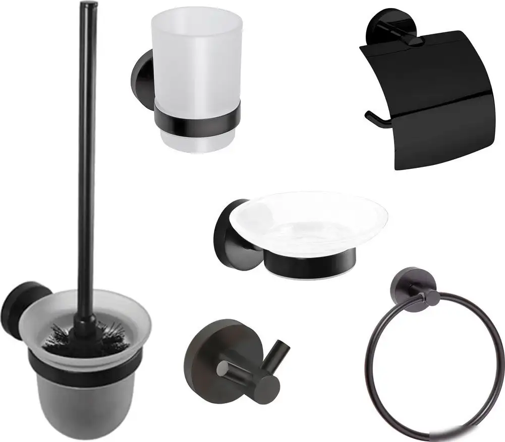 | Комплектация | держатель для мыльницы, держатель для полотенца, держатель для стакана, держатель для туалетной бумаги, ершик для унитаза, кольцо для полотенца, крючок, мыльница, стакан для зубных щеток |