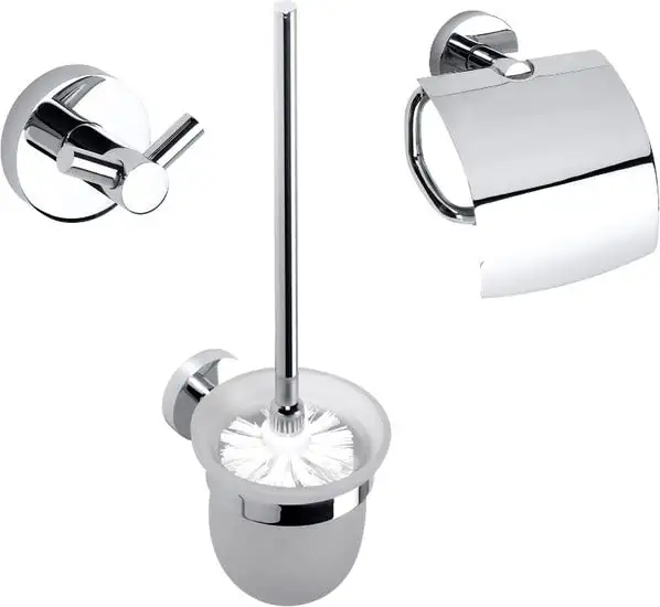 Набор для туалета Bemeta Omega 204301 легко устанавливается на стену с помощью шурупов, что обеспечивает надежное крепление. Он выполнен из прочной латуни с гладкой хромированной поверхностью, которая долго сохраняет свой внешний вид. В комплект входят два крючка, позволяющие удобно расположить туалетные принадлежности. Такой набор подойдет для установки в ванной или туалете, добавляя простоту и порядок в комнату. Крючки легко крепятся и держат тяжелые предметы, не боясь деформации. Глянцевая хромированная поверхность устойчива к влаге и загрязнениям. Материал обеспечивает долговечность использования без необходимости частого ухода. Надежность монтажа гарантирует безопасность и устойчивость на стене. Группа товаров представляет собой функциональное и эстетичное решение для организации пространства.