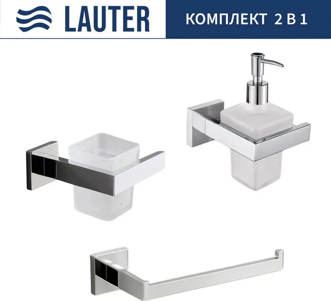Набор аксессуаров для ванной Lauter 21SH71061 + 21SH71091 + 21SH71071 (Chrome, 3 предмета)