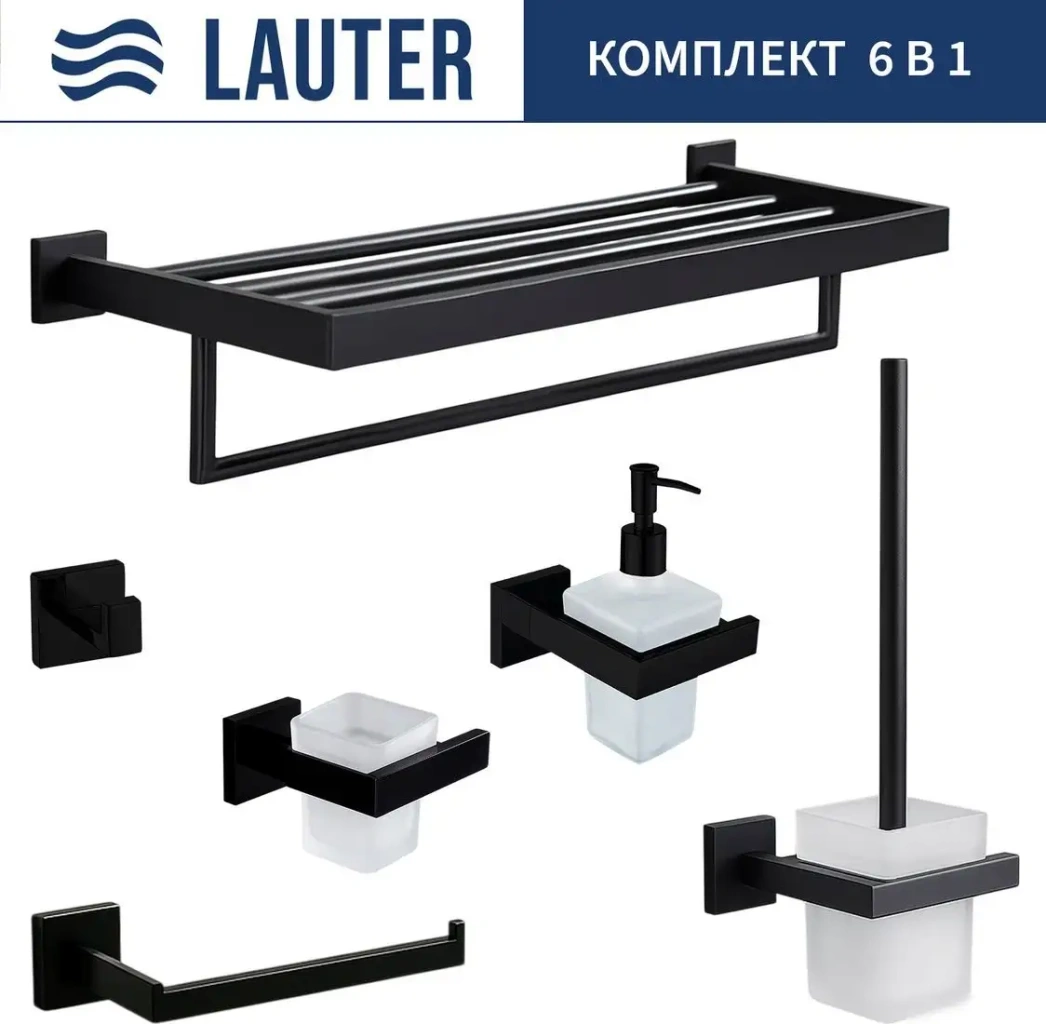 Набор аксессуаров для ванной Lauter 21SH71062+21SH71092+21SH71072+21SH71092+21SH71152+21SH71112 (Matt Black, 6 предметов)