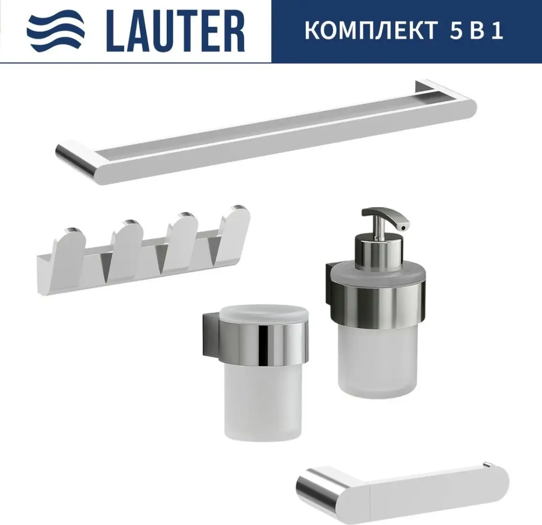 Набор аксессуаров для ванной Lauter 21TS3018 + 21TS3020 + 21TS3008 + 21TS3012 + 21TS3001 (Chrome, 5 предметов)