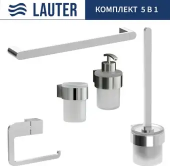 Набор аксессуаров для ванной Lauter 21TS3018 + 21TS3020 + 21TS3014 + 21TS3005 + 21TS3022 (Chrome, 5 предметов)