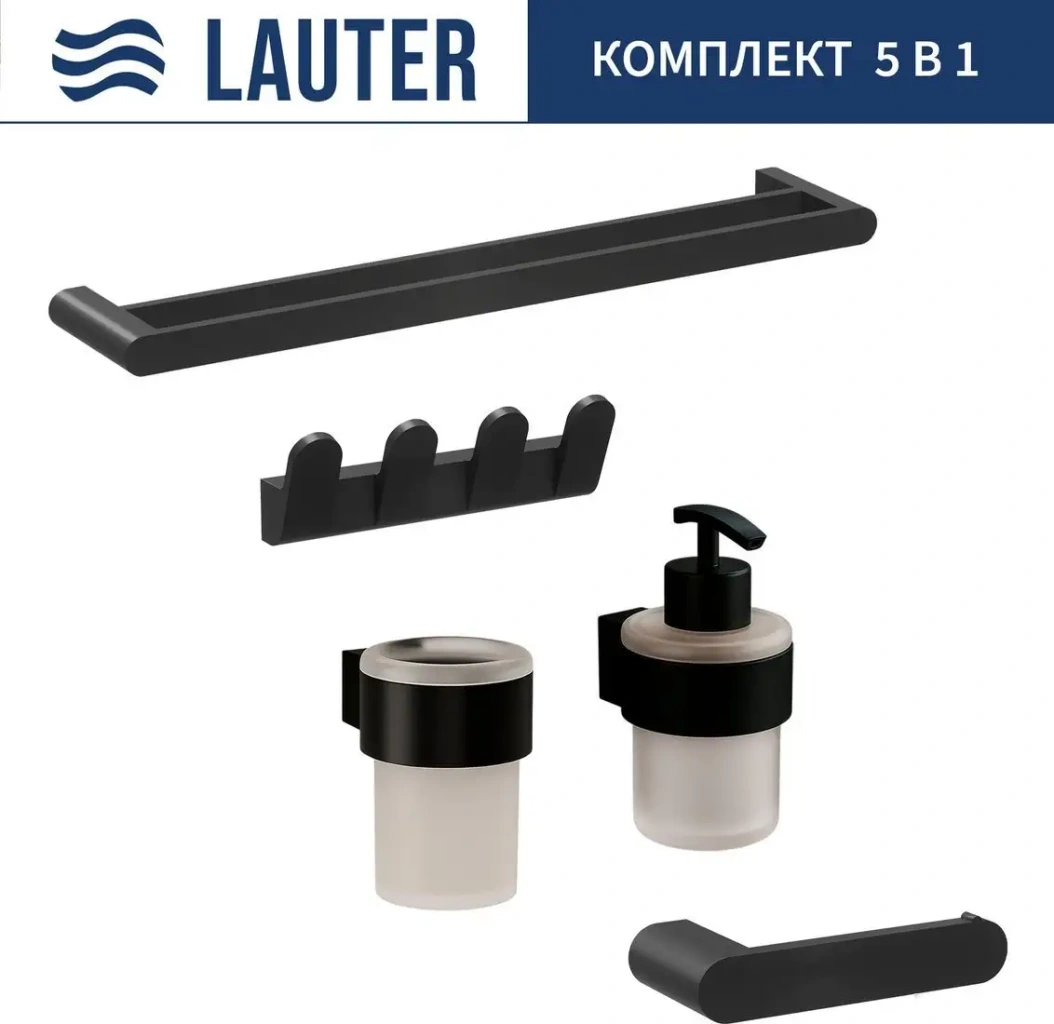 Набор аксессуаров для ванной Lauter 21TS3019 + 21TS3021 + 21TS3009 + 21TS3013 + 21TS3002 (Matt Black, 5 предметов )