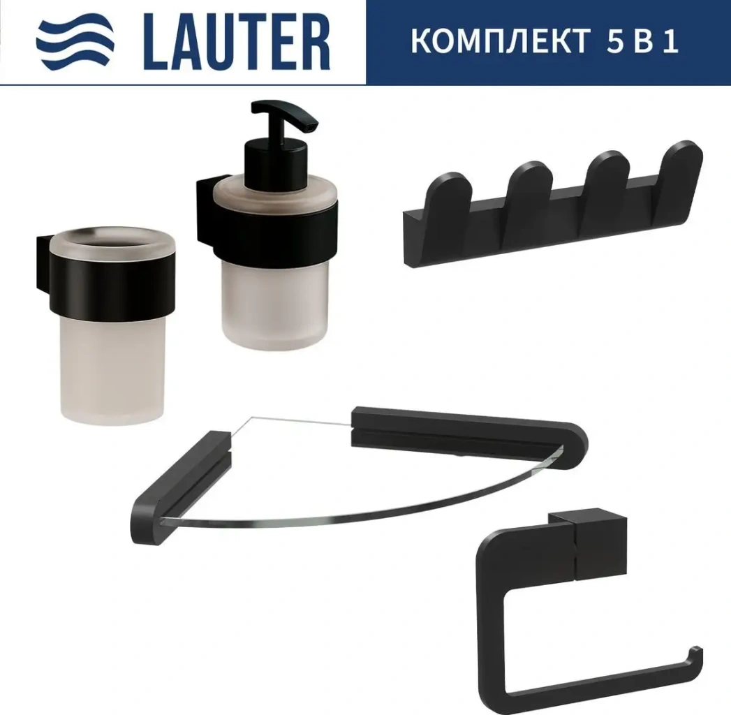 Набор аксессуаров для ванной Lauter 21TS3019 + 21TS3021 + 21TS3009 + 21TS3015 + 21TS3008 (Matt Black, 5 предметов)