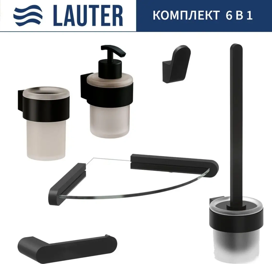 Набор аксессуаров для ванной Lauter 21TS3019 + 21TS3021 + 21TS3011 + 21TS3013 + 21TS3008 + 21TS3023 (Matt Black, 6 предметов)
