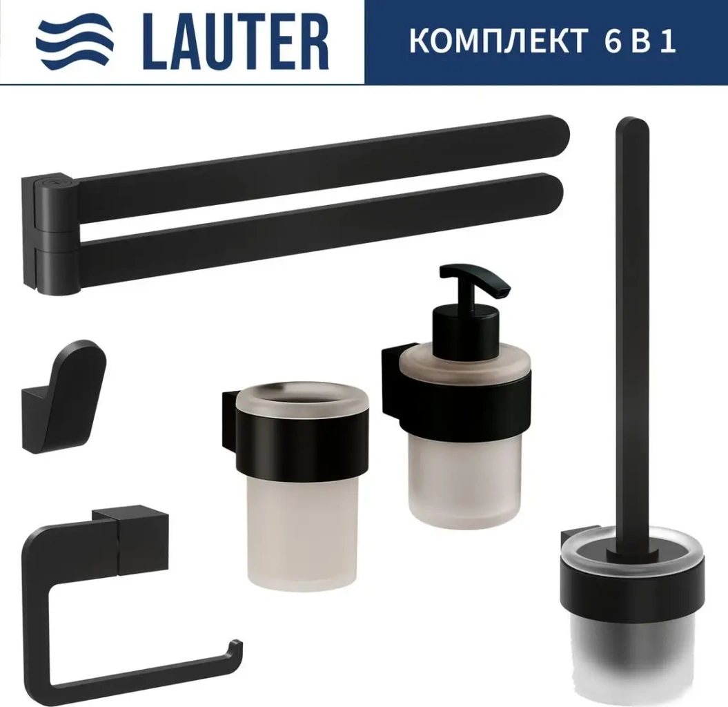 Набор аксессуаров для ванной Lauter 21TS3019 + 21TS3021 + 21TS3011 + 21TS3015 + 21TS3004 + 21TS3023 (Matt Black, 6 предметов)