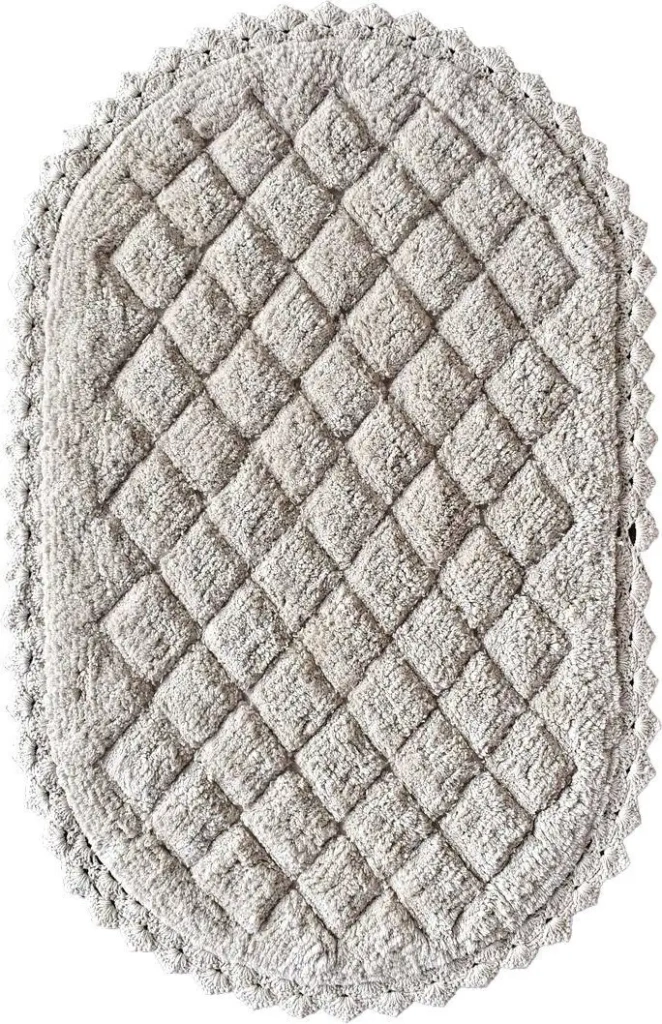 Этот коврик для ванной Sofi De MarkO Florence создаёт комфорт и безопасность в вашей ванной комнате. Он выполнен из мягкого хлопка, что обеспечивает приятные ощущения под ногами. Овальная форма и бежевый цвет делают его стильным и легко сочетаемым с любой ванной. Размер 60х100 см идеально подходит для установки у ванны или душевой кабины. Коврик устанавливается на пол и быстро сохнет после использования. Он помогает предотвратить скольжение и сохраняет чистоту пола. Материал из хлопка делает его мягким и приятным на ощупь. Прост в уходе — его легко стирать и поддерживать в чистоте. Такой коврик станет полезным дополнением для комфортной и безопасной ванной.