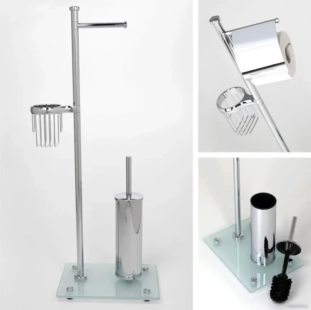 держатель для туалетной бумаги, ершика и освежителя, напольная установка, металл/пластик/стекло