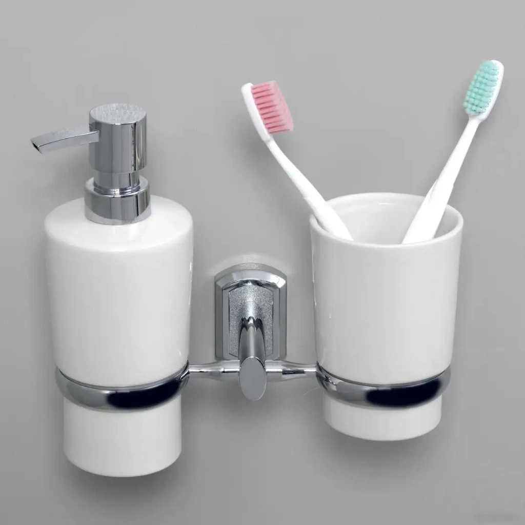держатель для стакана и дозатора мыла, настенная установка, металл/пластик/фарфор