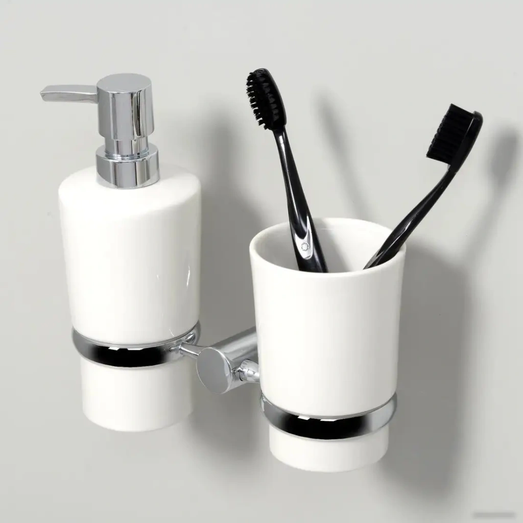 держатель для стакана и дозатора мыла, настенная установка, металл/пластик/фарфор