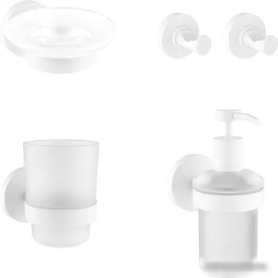 Набор аксессуаров для ванной Wellsee Finishing Touch 182515002 (мыльница, стакан для зубных щеток, дозатор для жидкого мыла, крючок 2 шт, матовый белый)