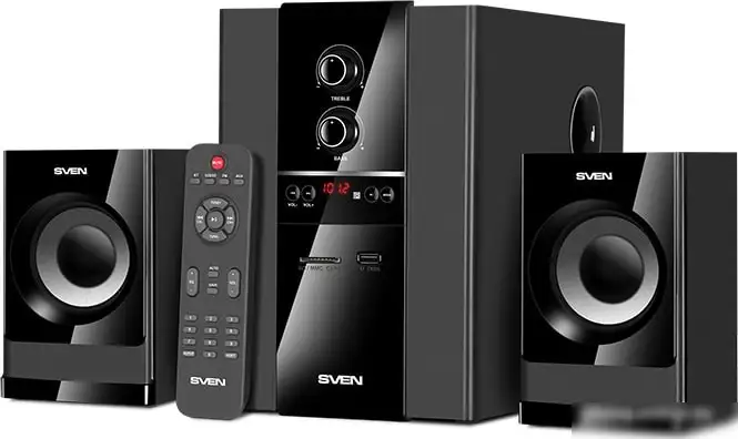 Акустика SVEN MS-1821 представляет собой компактную систему 2.1 с мощностью 40 Вт, которая легко разместится на столе или полке. Встроенный усилитель обеспечивает стабильную работу и хорошее качество звучания. В системе есть два фронтальных динамика по 11 Вт и сабвуфер мощностью 18 Вт, что позволяет получать чистый звук и глубокие низкие частоты. Колонки соединяются через Bluetooth и имеют линейный вход, что удобно при подключении к разным устройствам. В системе есть встроенный FM-радиоприёмник и дисплей, что делает прослушивание радио простым и удобным. Пульт дистанционного управления помогает управлять акустикой с расстояния. Элементы питания для пульта уже входят в комплект. Также есть карточки SD и USB для воспроизведения музыки, а стеновые крепления позволяют разместить колонки на стене. Эта акустика объединяет хорошую мощность, легкое управление и возможность подключения разных источников звука.