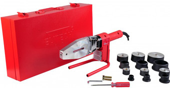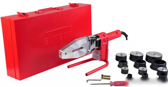 аппарат, 1500 Вт, мечевидный, 300 °C, термостат, с тефлоновым покрытием, насадки 20 мм/25 мм/32 мм/40 мм/50 мм/63 мм, кейс