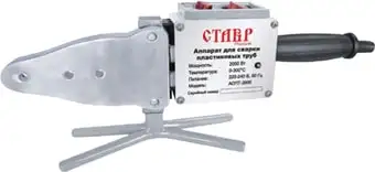 Ставр АСПТ-2000 — это мощный аппарат с нагревом до 300 °C, который отлично подходит для работы с трубами разного диаметра (от 20 до 63 мм). Он быстро нагревается всего за 2,5 минуты и имеет три уровня температуры для более точного контроля. В комплекте идут сменные насадки, нагревательные гильзы и дорны, что помогает выполнять разные задачи легко и быстро. Также есть ножницы для резки труб, рулетка и другие полезные инструменты, а кейс помогает хранить всё в порядке. Этот аппарат легко управляется благодаря терморегулятору и удобному рабочему выводу нагревателей. Его длина сетевого кабеля — 2 метра, а вес — около 4.98 кг с кейсом, что делает его удобным для перевозки и хранения.