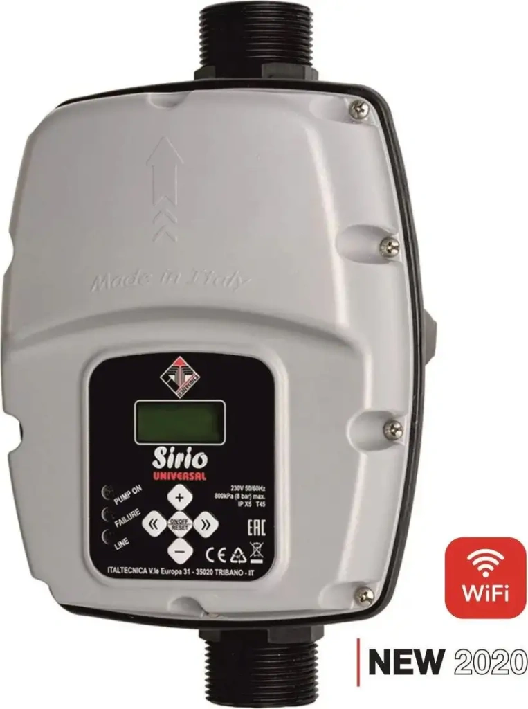 Частотный блок автоматики Italtecnica Sirio Universal помогает управлять насосами автоматически, что повышает их эффективность и защищает оборудование. Он подключается с помощью наружной резьбы диаметром 1 дюйм и оснащён электронным манометром для точного контроля давления. Блок защитит насос от сухого хода, предотвращая возможные повреждения. Рабочее давление — от 0,5 до 8 бар, а перекачиваемая жидкость должна иметь температуру от 1 до 35 °C. Устройство предназначено для работы в условиях защиты IPX5, что обеспечивает устойчивость к влаге. Оно работает при напряжении 220 В или 380 В, при этом потребляет не более 10.5 А. Размеры и вес позволяют легко устанавливать и переносить его при необходимости. Такой блок автоматизации помогает поддерживать стабильную работу системы и экономит время на ручное управление.