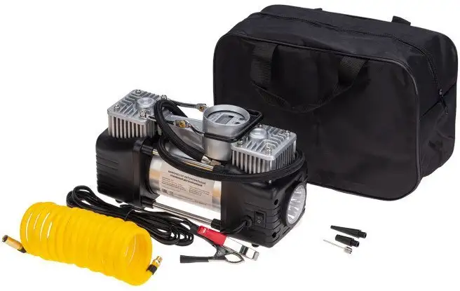| Комплект поставки | - компрессор автомобильный – 1 шт., - пневмошланг – 1 шт., - сумка для хранения – 1шт., - упаковка – 1 шт., - паспорт изделия – 1 шт., - насадки – 3 шт. |