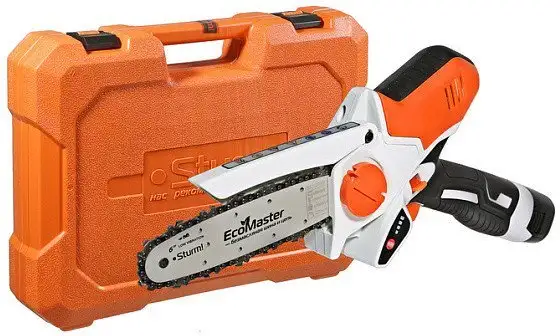 аккумуляторная, бытовая, 16 В, шаг цепи: 1/4 дюйма, длина шины: 15.2 см, аккумулятор в комплекте, быстрое натяжение цепи, 2.7 кг