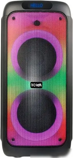 Патибокс BQ PBS3003 — это портативная колонка, созданная для вечеринок и мероприятий на свежем воздухе. Она имеет мощность 80 Вт и акустическую систему с двумя полосами и тремя динамиками, что обеспечивает насыщенный звук и широкий диапазон частот от 42 до 20 000 Гц. Колонка работает на аккумуляторе с емкостью 5500 мА·ч, позволяющим слушать музыку до 7 часов без подзарядки. Ее удобно переносить благодаря встроенной ручке и колесикам, а также есть дисплей для отображения информации и подсветка для яркого эффекта в темноте. При этом устройство поддерживает воспроизведение с USB и microSD, а также подключение по Bluetooth 5.0. В комплект входит микрофон для караоке и пульт дистанционного управления. Также есть разъемы для гитары, наушников и аудиокабель, что расширяет возможности использования. Обратите внимание на уникальные функции: