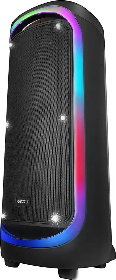 Патибокс Ginzzu GM-206 — это мощная колонка для вечеринок, которая работает от сети и аккумулятора. В ней есть два динамика, один низкочастотный и три среднечастотных, а также два твитера, что обеспечивает чистое и громкое звучание. Благодаря аккумулятору емкостью 12 000 мА·ч колонка может работать долгое время без подключения к электросети. Она оснащена Bluetooth 5.0 для беспроводного соединения, а также имеет входы для аудиокассет, гитар и микрофонов. Встроенный дисплей и подсветка помогают управлять настройками, а пульт дистанционного управления делает использование еще удобнее. Колонка оборудована радиоприемником и функциями караоке, эквалайзером и подставкой для смартфона. Встроенные колеса и ручка облегчают переноску. Габариты: 915 мм в высоту, 355 мм в ширину и вес 22.1 кг.