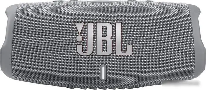 Беспроводная колонка JBL Charge 5 выполнена в сером цвете и выпущена в 2021 году. Она мощностью 40 Вт, разделённой на два динамика — широкополосный и твитер, что обеспечивает чистый и насыщенный звук. Колонка защищена от пыли и влаги по стандарту IP67, её можно брать на улицу или в поход. Время работы от аккумулятора составляет до 20 часов, а емкость батареи — 7500 мА·ч, поэтому она долго радует музыкой без подзарядки. Корпус сделан из пластика, резины и ткани, что обеспечивает прочность и удобство переноски. Благодаря функции JBL PartyBoost можно подключать несколько колонок для усиления звука. Также есть возможность заряжать другие устройства через порт Type-A, что очень удобно в путешествиях.
