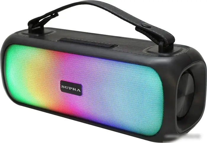 Беспроводная колонка Supra BTS-690 имеет мощность 40 Вт и звучит ярко благодаря двум динамикам и пассивному излучателю. Она работает по Bluetooth 5.1 и легко подключается к другим устройствам, поддерживая беспроводную синхронизацию в стерео. Колонка оснащена аккумулятором емкостью 3000 мА·ч, который обеспечивает до 4 часов музыки. Она также поддерживает воспроизведение с USB-носителей и имеет встроенные микрофон и радио для расширенных функций. Корпус изготовлен из прочного пластика и водонепроницаем по стандарту IPX5, что позволяет использовать её на улице и под дождём. Управление осуществляется кнопками и регуляторами, а наличие подсветки делает использование удобным даже в темноте. В комплект входит аудиокабель и кабель для зарядки с разъёмом USB Type-C. Колонка удобно переносится и подходит для активного отдыха или дома, сочетая хорошее качество звука и простоту использования.
