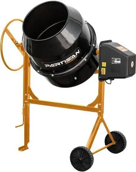 Бетономешалка Partisan PT-205 — это надежный инструмент для приготовления бетона. У нее мощность 1100 Вт, что помогает быстро смешивать материалы. Объем барабана составляет 200 литров, а объем готовой смеси — 160 литров, что подходит для небольших строительных проектов. Бетономешалка выполнена в черном цвете и имеет размеры примерно 123 см в длину, 69,5 см в ширину и 129,6 см в высоту. Вес агрегата — 43 кг, он достаточно легкий для своей мощности и объема.