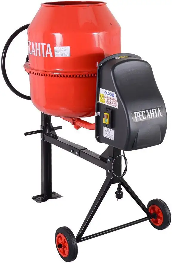 - Большой объем барабана — позволяет замешивать больше смеси за один раз.