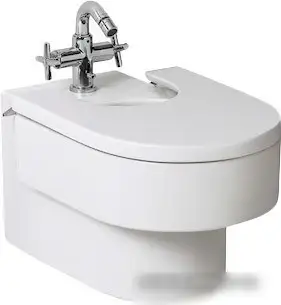 подвесной монтаж, овальная чаша, горизонтальный выпуск, с отверстием под смеситель, крышка, 36x56x40 см, белый цвет