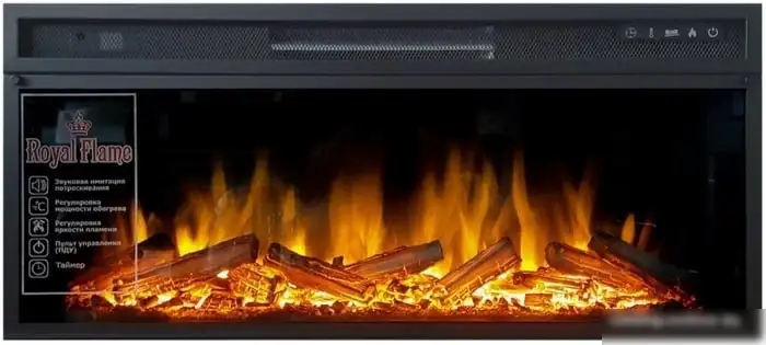 Электрокамин Royal Flame Vision 42 LOG LED предназначен для встроенного установки и создает уют благодаря имитации огня с LED-обоями. Он позволяет обогревать помещение с регулировкой мощности по шести уровням и поддерживает комфорт через встроенный термостат. Имитированный огонь отображается с помощью светодиодной подсветки с возможностью регулировки яркости, а звуковая имитация создает более реалистичную атмосферу. Панорамное стекло отсутствует, но устройство имеет современный черный дизайн и компактные размеры. Управление происходит с помощью пульта дистанционного управления, что удобно для пользователя. Режим "без нагрева" подходит для декоративных целей, а наличие таймера и программирования не предусмотрены. Устройство отличается простотой и безопасностью в эксплуатации. Its slim dimensions of 95 см ширины, 21 см глубины и 42,5 см высоты позволяют легко интегрировать его в любой интерьер.