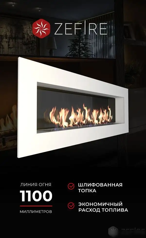 Биокамин ZeFire Elliot 1800 имеет современный дизайн и отлично вписывается в любой интерьер. Он изготовлен из металла и оформлен в белом цвете, что придает ему стильный вид. Этот биокамин предназначен для настенного монтажа и не занимает много места — его размеры 180 см в ширину, 17,6 см в глубину и 65 см в высоту. В комплекте нет портала, поэтому его установка проста и быстра. Имитация огня создается благодаря 3D эффекту, который выглядит очень реалистично. Тип биокамина — без обогрева, он служит скорее декоративным элементом. Он оснащен линией огня длиной 110 см и имеет объем заправки 6,3 литра. Такой биокамин добавит уют и стиль, не требуя большого ухода.