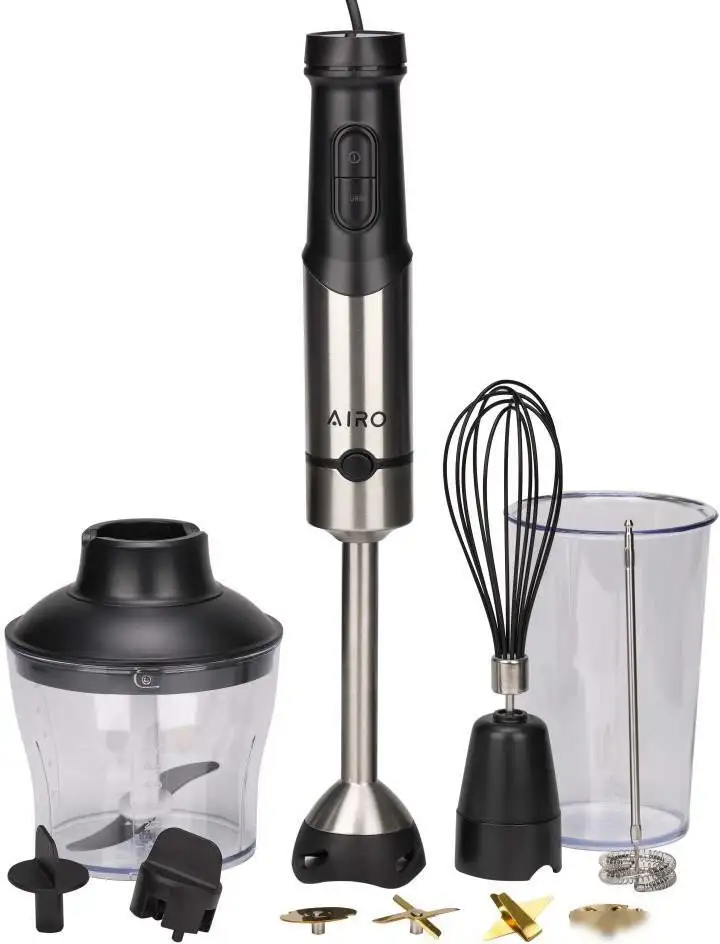 Погружной блендер Airo HB1500FS идеально подходит для домашнего использования. Он работает от сети и имеет мощность 1500 Вт, что позволяет быстро и легко справляться с разными задачами. Блендер оснащён 12 скоростями и режимом «Турбо», чтобы точно подобрать нужную мощность. Его корпус сделан из металла и пластика, а ножка — из прочной металла, что обеспечивает долговечность. В комплект входит мерный стакан и вспениватель молока, что удобно для приготовления напитков и блюд. Также есть насадка для измельчения продуктов, которая помогает быстро подготовить ингредиенты. В устройстве реализована плавная регулировка скорости, что делает использование комфортным. Не предусмотрена возможность колки льда и управление со смартфона. Этот погружной блендер отлично сочетает мощность и простоту использования для самых разных кухонных задач.