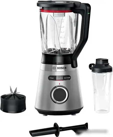 Стационарный блендер Bosch MMB6384M работает от электросети и имеет мощность 1200 Вт, что позволяет быстро измельчать и смешивать продукты. Чаша объемом 1,5 литра изготовлена из стекла и легко моется. Блендер оснащен многоступенчатой регулировкой скорости и режимом «Импульс», что помогает добиться нужной консистенции. В набор входят автоматические программы для приготовления смузи, колки льда и очистки, а также есть функция колки льда, которая значительно ускоряет подготовку напитков и десертов. В комплекте есть переносная бутылка ToGo для удобства использования вне дома. Он обладает надежными металлическими корпусом и дизайном в черном цвете, что придает ему современный вид. Это устройство идеально подходит для тех, кто ищет мощный и многофункциональный кухонный прибор.
