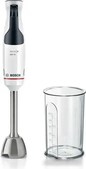 Погружной блендер Bosch MSM4W210 — это удобный прибор для приготовления разных блюд и напитков. Он работает от электросети и имеет мощность 600 Вт, что обеспечивает быструю работу. Корпус сделан из прочного пластика и окрашен в белый цвет, что легко вписывается в любой кухонный интерьер. Длина провода 1.4 метра позволяет свободно двигаться во время готовки. В комплект входит мерный стакан для точного измерения ингредиентов. У блендера нет дополнительных функций, таких как регулировка скорости или режимы «Турбо», что делает его простым в использовании. Его размеры и вес позволяют удобно хранить и легко держать в руке. Этот прибор отлично подойдет для выполнения основных задач — взбивания, измельчения и перемешивания продуктов.