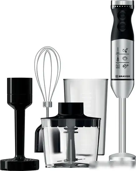 Погружной блендер Brayer BR1244 работает от сети и обладает мощностью 800 Вт, что позволяет быстро и легко взбивать, измельчать и перемешивать продукты. Его корпус сделан из пластика и металла, а ножки — из металла, что обеспечивает долговечность и надежность. Блендер имеет многоступенчатую регулировку скорости и режим «Турбо», что позволяет выбирать необходимую мощность для различных задач. В комплект входит мерный стакан на 0,7 л, насадка для взбивания и насадка для пюре. Он идеально подойдет для приготовления соусов, пюре, взбитых сливок и измельчения продуктов.