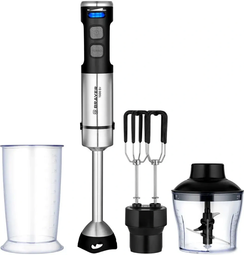 Погружной блендер Brayer BR1264 идеально подходит для приготовления различных блюд. Он работает от сети с мощностью 1500 Вт, что обеспечивает быстрое и эффективное смешивание. Благодаря многоступенчатой регулировке скорости пользователь легко подбирает нужный режим для любой задачи. В комплект входит мерный стакан на 0,8 литра и венчик для взбивания, что расширяет возможности использования. Надежный металлический корпус и ножи делают устройство долговечным и устойчивым к нагрузкам. В режиме «Турбо» блендер быстро справляется с сложными задачами. Он не имеет функций для колки льда или работы со смартфоном, зато отлично измельчит продукты. Стальной нож и материалы обеспечивают простоту очистки и долгий срок службы. Блендер легко управляется с помощью простых кнопок и удобно держится в руке. Его компактный дизайн подходит для любой кухни и не занимает много места.
