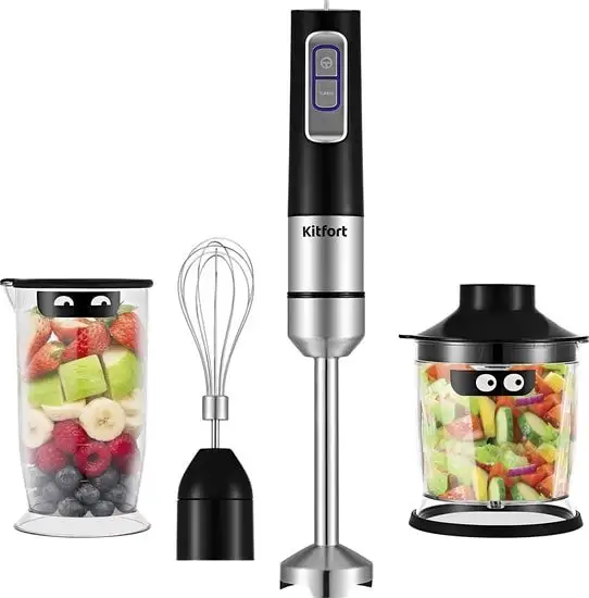 Погружной блендер Kitfort KT-3052 — это удобный помощник для приготовления различных блюд. Он работает от сети и обладает мощностью 1000 Вт, что позволяет быстро и эффективно измельчать продукты. Блендер имеет многоступенчатую регулировку скорости и режим «Турбо» для дополнительной мощности при необходимости. В комплект входит мерный стакан на 0.7 литров и насадка для взбивания, что удобно для приготовления коктейлей и белков. Корпус сделан из пластика, а ножка — из металла, благодаря чему устройство прочное и долговечное. Длина провода 1.1 метра, что удобно при использовании на кухне. Блендер весит около 1300 граммов и занимает немного места при хранении.