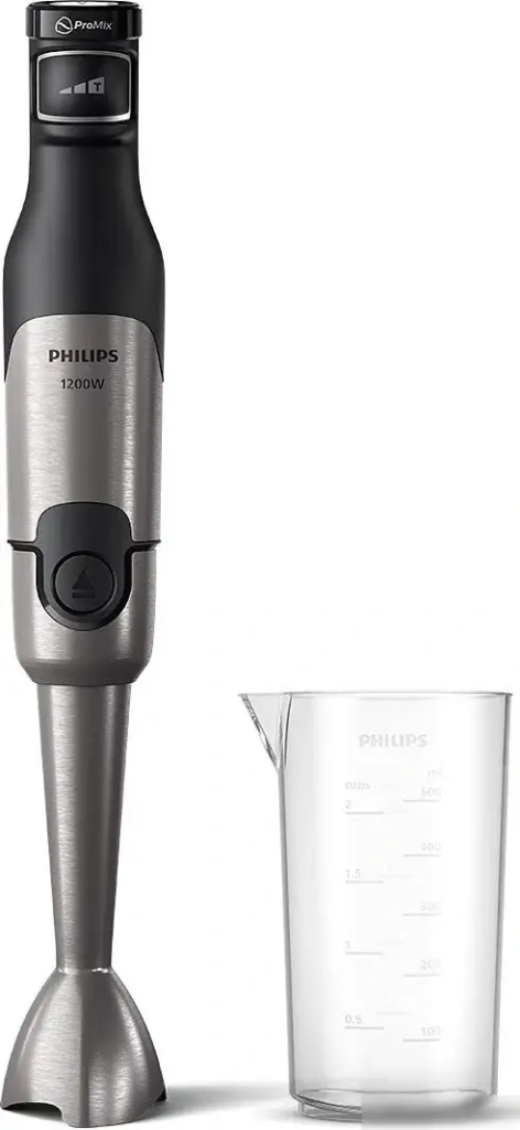 Погружной блендер Philips 5000 Series HR2681/00 отлично подходит для скоростного приготовления различных блюд. Он работает от электросети и имеет мощность 1200 Вт, что позволяет легко измельчать и взбивать продукты. Регулируйте скорость по своему желанию с помощью многоступенчатой системы управления, а режим "Турбо" добавит максимум мощности для сложных задач. Корпус сделан из прочных металла и пластика, а ножки из металла обеспечивают долговечность. В комплект входит мерный стакан для точного дозирования. Компактные размеры и легкий вес делают его удобным для хранения и использования. Он не предназначен для колки льда или работы со смартфоном, но справляется с большинством домашних задач. Надежность и практичность делают этот блендер хорошим выбором для любой кухни.