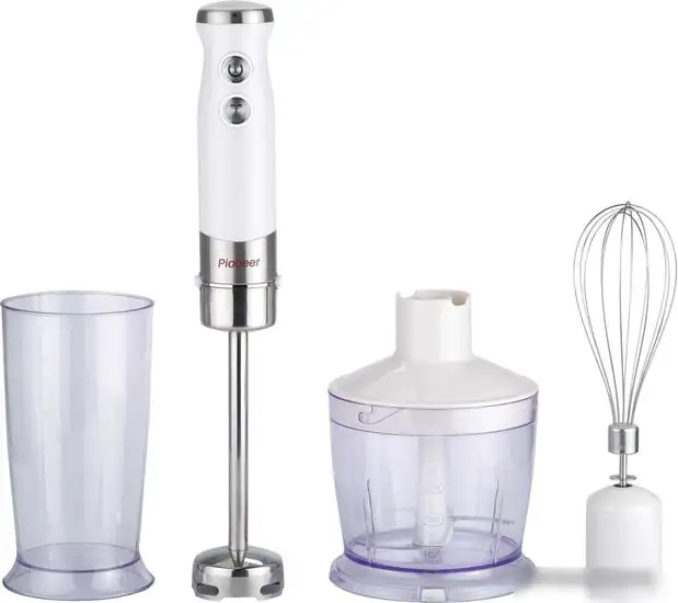 Погружной блендер Pioneer HB120S вышел на рынок в 2020 году и подходит для разнообразных кухонных задач. Он работает от электросети и имеет мощность 1200 Вт, что позволяет быстро и легко готовить вкусные блюда. У этого блендера есть 5 скоростей с LED-подсветкой и режим «Турбо» для увеличения мощности. Корпус сделан из металла и пластика, а ножка — из нержавеющей стали, что обеспечивает долговечность. В комплект входит мерный стакан на 0,6 литра и венчик для взбивания, которые помогают при приготовлении разнообразных блюд.