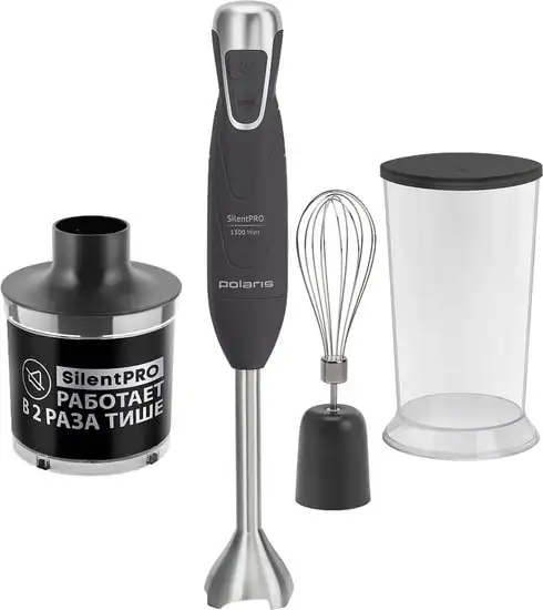 Погружной блендер Polaris PHB 1384 Silent вышел на рынок в 2019 году и отлично подходит для приготовления пищи дома. Он работает от сети и имеет мощность 1300 Вт, благодаря чему легко справляется с различными задачами. В блендере есть две скорости и режим «Турбо», что позволяет быстро и удобно регулировать работу. Корпус сделан из металла и пластика, а ножки — из прочной нержавеющей стали. В комплект входит мерный стакан на 0,7 литра с крышкой и венчик для взбивания, что делает его ещё более универсальным. Он отлично измельчает продукты и подходит для приготовления пюре и других блюд.