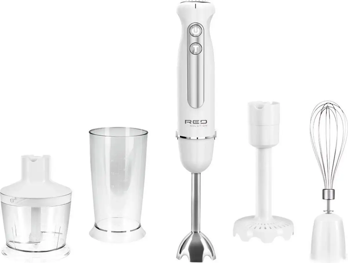 Погружной блендер RED Solution HB2917P произведён в Китае и отлично справляется с различными задачами. Он работает от электросети и имеет мощность 1300 Вт, что позволяет легко взбивать, измельчать и смешивать продукты. Управлять скоростью просто — есть многоступенчатая регулировка и режим «Турбо» для усиленной работы. В комплект входит мерный стакан на 600 мл, насадка для взбивания, пюре и измельчитель объёмом 0,5 л, что делает его универсальным помощником на кухне. Корпус выполнен из прочного пластика, а ножки — из металла, что повышает долговечность устройства. Длина кабеля составляет 1 метр, что обеспечивает свободу движения. Вес погружного блендера — 1750 г, он удобно лежит в руке и легко управляется. Этот блендер позволяет быстро готовить пюре, смузи и измельчать ингредиенты для различных блюд. Благодаря своим функциям, он сделает кухонные задачи проще и быстрее.