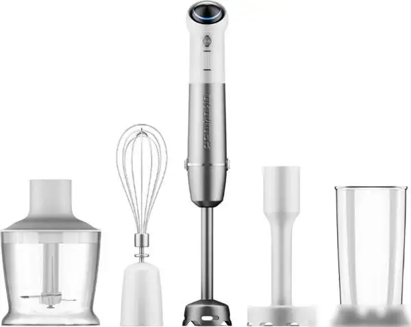 Погружной блендер Redmond BH421 обеспечивает высокую мощность в 1800 Вт, что позволяет быстро и эффективно измельчать продукты. Он выполнен из прочных материалов — металл и пластик, что гарантирует долгий срок службы, а его длина 430 мм удобна для использования в кастрюлях и мисках. Блендер легко регулирует скорость работы, а режим «Турбо» помогает справиться с любыми задачами. В комплект входит мерный стакан, насадка для взбитых и пюре, а также измельчитель объемом 0.5 литра. Такой набор функций позволяет готовить смузи, пюре, соусы и измельчать лед. Устройство не имеет возможности подключения к смартфону или вариантов для колки льда, но достаточно универсально для большинства домашних задач. Корпус выполнен в белом цвете с нержавеющей сталью, он приятен на вид и легко моется. Благодаря простой регулировке и надежной конструкции, использование блендера станет удобным и безопасным.