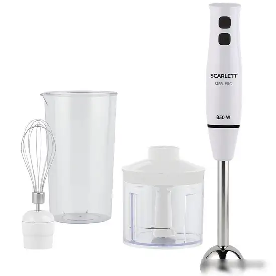 Погружной блендер Scarlett SC-HB42F06 отлично подходит для приготовления различных блюд и напитков. Он работает от сети и имеет мощность 850 Вт, что позволяет легко взбивать, измельчать и колоть лед. Устройство оснащено двумя скоростями и режимом «Турбо», который помогает справиться с toughest задачами. Металлическая ножка и корпус из пластика делают блендер прочным и легким в использовании. В комплект входит мерный стакан, насадка для взбивания, нож для измельчения и чашка объемом 500 мл. Блендер легко управляется вручную, не требует подключения к смартфону или наличия автоматических программ. Благодаря крупной и прочной насадке, он быстро справляется с готовкой, а его компактные размеры позволяют удобно хранить устройство. Это надежный помощник для кухни, который делает приготовление быстрее и удобнее.