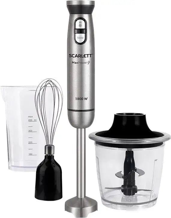 Погружной блендер Scarlett SC-HB42F88 — мощное устройство с 1800 Вт, которое быстро и легко измельчает продукты. Он работает от сети и имеет многоступенчатую регулировку скорости, чтобы подобрать подходящий режим. Блендер изготовлен из прочных материалов: корпус выполнен из металла и пластика, а ножки — из металла, что делает его долговечным. В комплект входят мерный стакан, венчик для взбивания и мини-измельчитель объемом 0.4 л, что расширяет его функции. В режиме «Турбо» блендер быстро справляется с сложными задачами. Он легко управляется без смартфона и не имеет режима колки льда или насадок для теста и нарезки. Благодаря компактным размерам и весу в 1400 г, устройство удобно держать и хранить. Длина провода 0.9 м обеспечивает свободу движений во время работы.