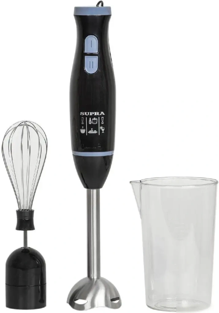 Погружной блендер Supra HBS-748 помогает быстро и удобно готовить дома. Он работает от электросети и мощностью 700 Вт, что обеспечивает хорошую производительность. Оснащён двумя скоростями и режимом «Турбо», что позволяет легко регулировать мощность. Корпус изготовлен из пластика, а ножки — из металла, что делает устройство прочным и лёгким в использовании. В комплект входит мерный стакан на 0,5 л, венчик для взбивания, а также крепление на стену для удобства хранения. Блендер отлично подходит для взбивания, измельчения и перемешивания продуктов. Он не предназначен для колки льда или работы со смартфонами, но справляется с большинством задач в кухне. Его компактный дизайн и разнообразие насадок сделают приготовление быстрее и приятнее. Этот блендер — полезный помощник для домашней кухни, сочетающий простоту и функциональность.