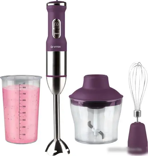 Погружной блендер Vitek VT-3415 BD мощностью 900 Вт легко справляется с различными задачами в кухне. Он имеет 15 скоростей, что позволяет точно регулировать мощность для разных рецептов. Крепкая ножка из металла и металлический корпус обеспечивают долговечность устройства. В комплект входит мерный стакан на 0,8 л и венчик для взбивания, что расширяет его возможности. Блендер работает в режиме "Турбо", который быстро обрабатывает продукты при необходимости. Плавная регулировка скорости помогает подобрать оптимальные параметры работы. Он не имеет режима "Импульс" и нагрева, так что работает стабильно и безопасно. Устройство удобно держать благодаря компактным размерам и легкому весу — всего 1300 г. Это устройство отлично подходит для взбивания, измельчения и смешивания продуктов.