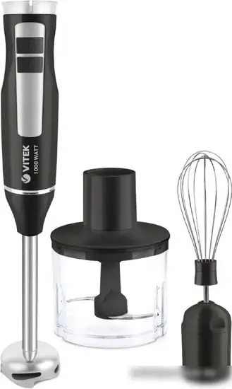 Погружной блендер Vitek VT-8542 — это удобный кухонный прибор с мощностью 1000 Вт и возможностью регулировки скорости. Его корпус сделан из прочного пластика, а ножки — из металла, что обеспечивает долговечность и надежность. В комплект входит мерный стакан на 0,7 литров и венчик для взбивания, что позволяет легко готовить различные блюда и напитки. Этот блендер имеет режим «Турбо», который помогает быстро справиться с toughest задачами. Он удобен в использовании благодаря длинному проводу 1.1 м, его легко держать в руке и мыть после использования. Также удобно то, что есть насадка-измельчитель на 0.45 л, которая позволяет быстро перемалывать продукты. Этот прибор отлично подойдет для приготовления пюре, соусов и других блюд.